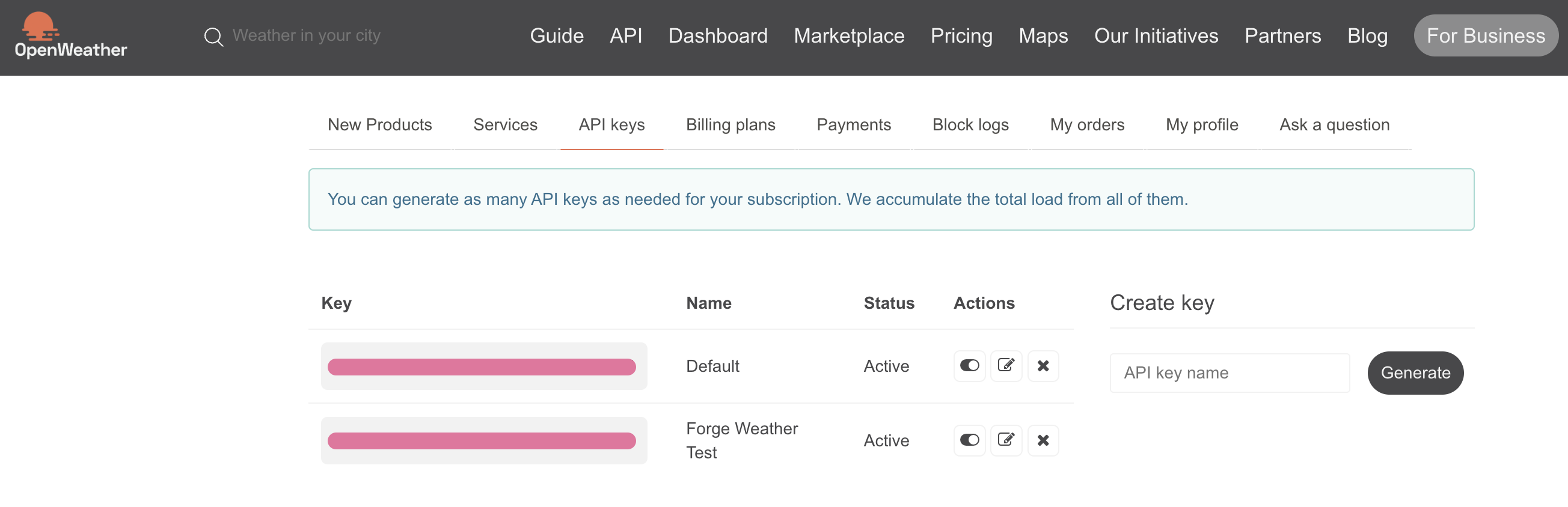 Create an account and generate an OpenWeather API key