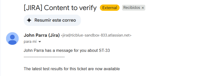 “htmlBody”: “The latest test results for this ticket are now available.”