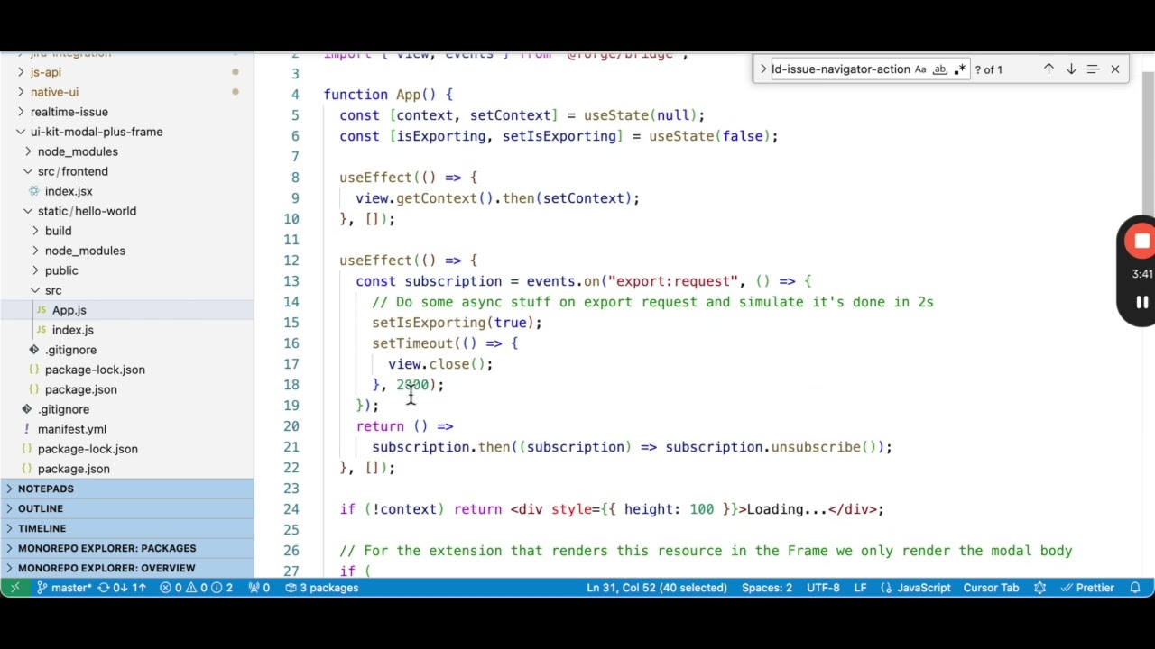 Holla, btw nice work with being that detailed lol. Now since Forge’s jira:issueNavigatorAction module inherently wraps actions in a modal, it’s causing the unwanted nesting when you try to render your own Atlaskit modal inside it.